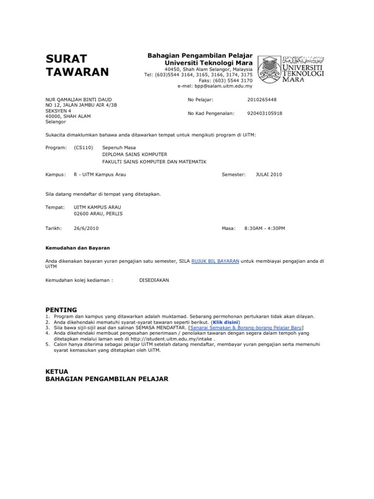 Dan 2 pelaksanaan penilaian kendiri terhadap aktiviti … uitm surat tawaran. 15.11.2021 · surat timbalan naib canselor (akademik dan antarabangsa):
